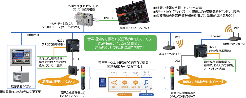●既存装置を改造せずに、アンドンディスプレイと音声
