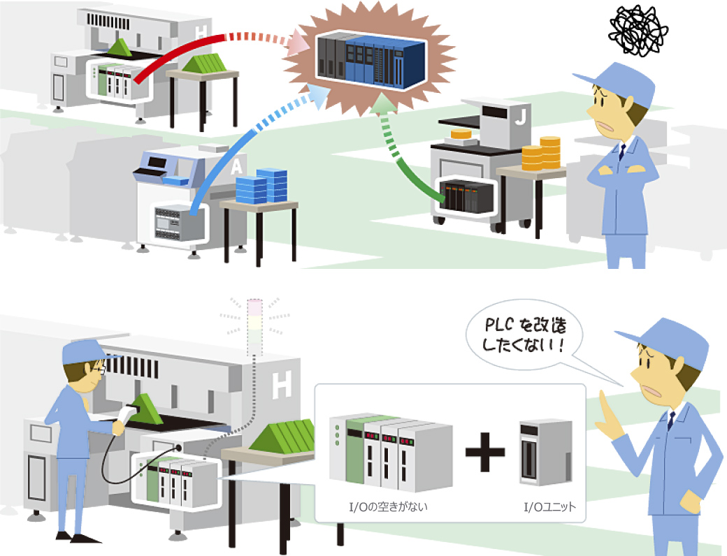 ●装置側PLCを改造せずに、ランプやブザーを取り付け!