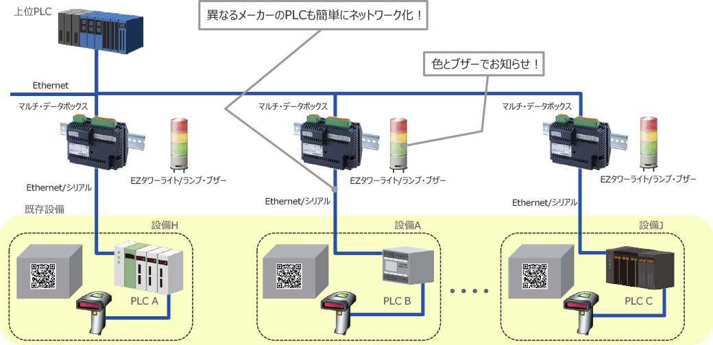 ●各装置の通信方式がバラバラでも、QRコード情報を集約!