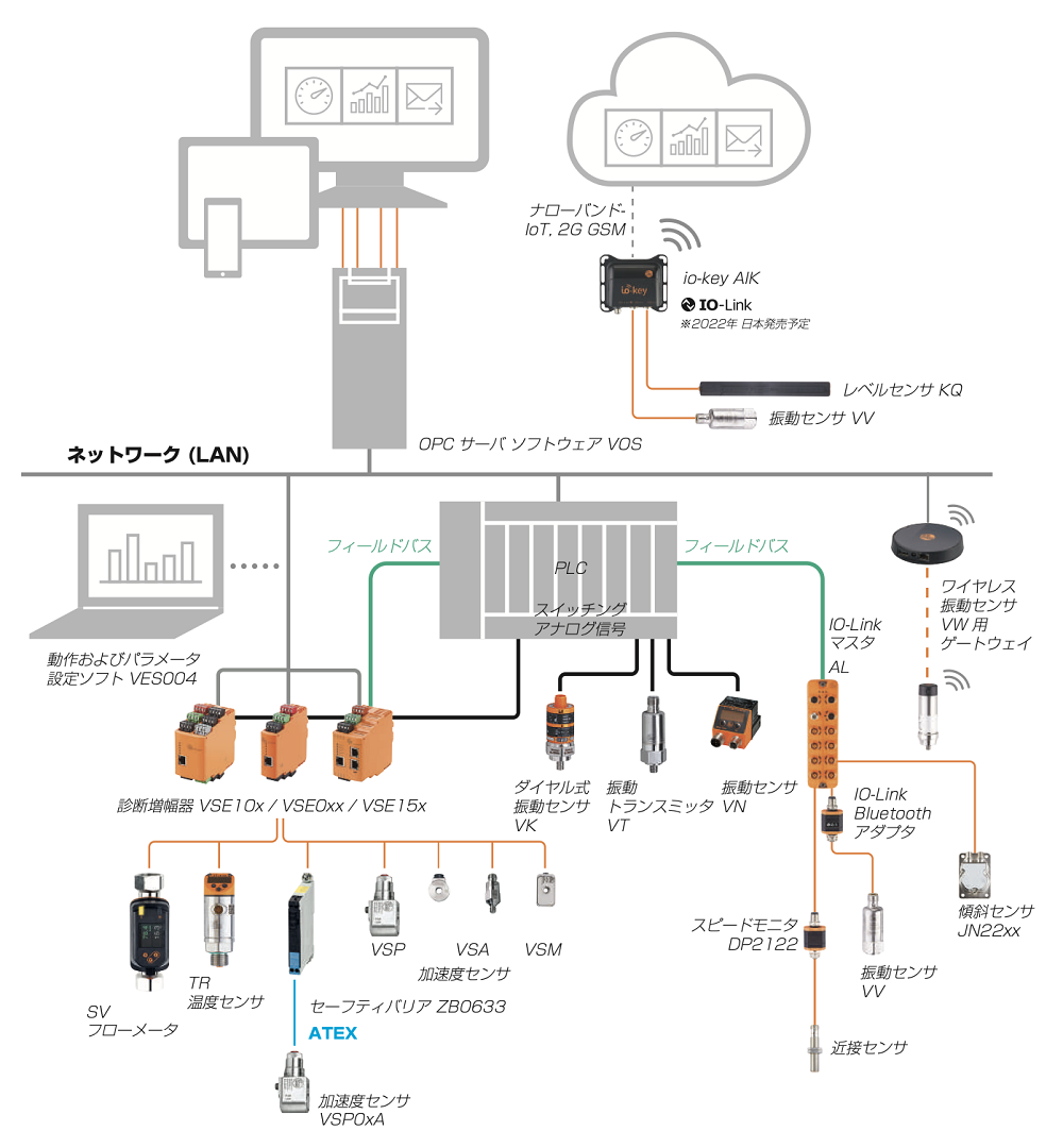 振動診断システムはネットワーク経由でPLC、MES、SCADA等の上位システムと連携可能です。