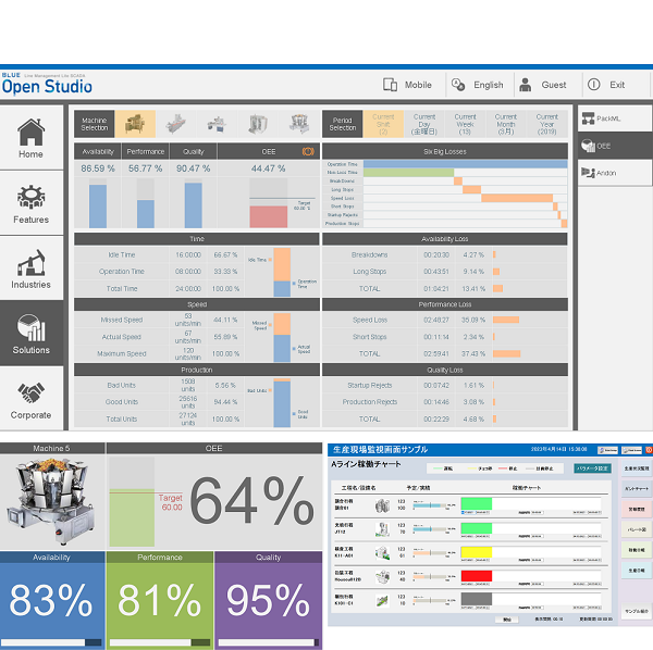 ”BLUE Open Studio”では、OEEダッシュボードやガントチャート、トレンドやスケジューラーなど、 設備監視に役立つサンプルを多数ご用意しております。