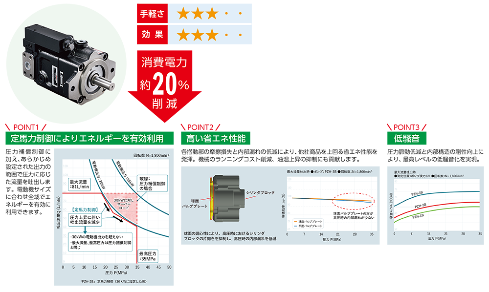 35MPa、100ℓ/minの高圧大流量はそのままに、設備の省エネ化に貢献