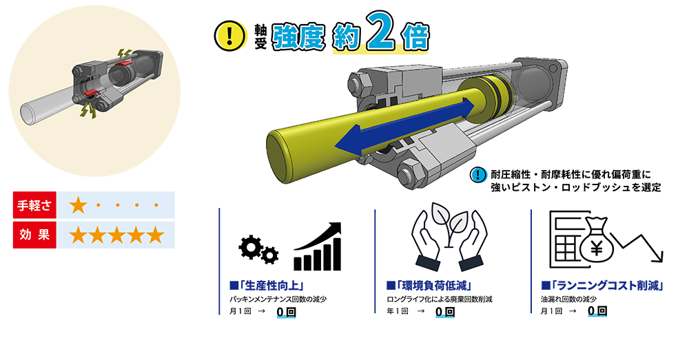 油漏れ回数が減少し、ランニングコストを削減する油圧シリンダ