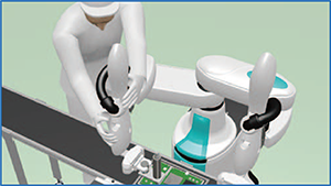 アームの同軸配置とコントローラの小型化により、人ひとり分の省スペースと広い協調動作範囲を実現しました。