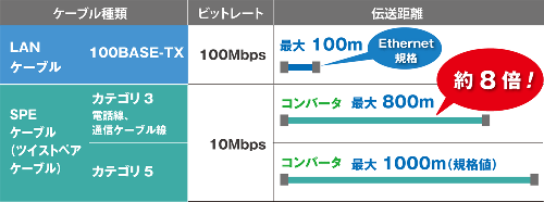 一般家庭でも広く使われるようになったLANケーブルの伝送距離は最大で100mですが、メタトロンコンバータは、イーサネットの最大伝送距離を1000mまで延ばすことができる便利なネットワーク変換器