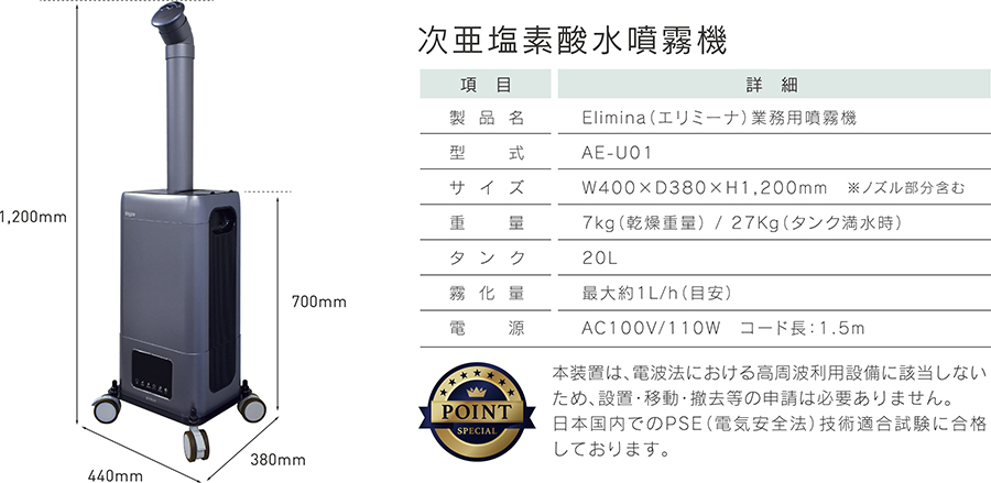 次亜塩素酸水噴霧機Elimina-エリミーナ-