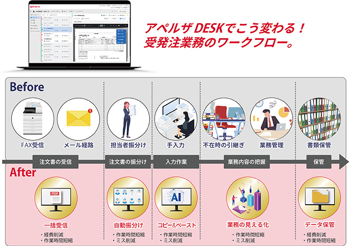 FAXもメールも一括受信。受発注業務の処理時間を大きく短縮。