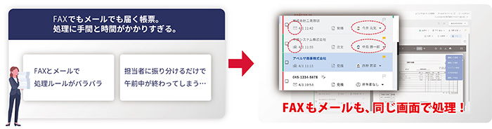 ■《FAXもメールも同じ画面で処理できる&担当者に自動で振り分けが可能》