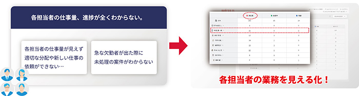 そのため、担当者ごとの作業量を把握することで偏りをなくしたり、急な欠勤の引継ぎも楽に行えます。