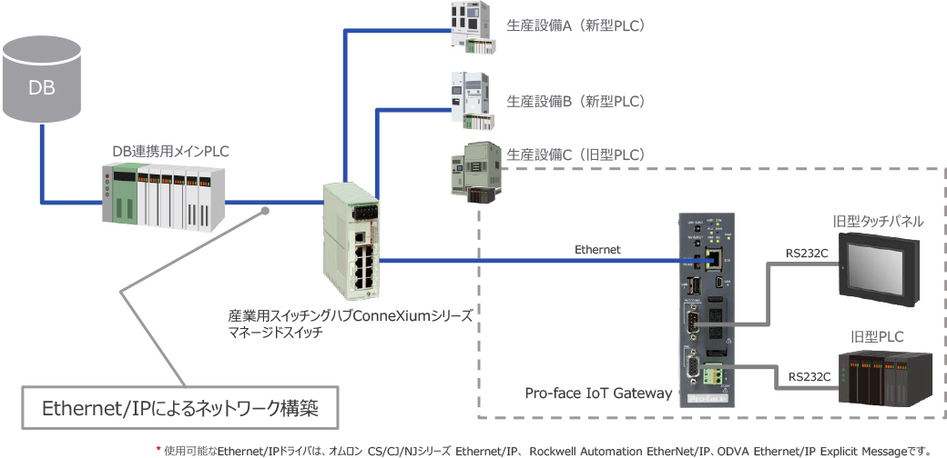 • ※ Ethernet/IP以外のEthernet通信ドライバーを使用したフィールドネットワークにも対応しています。