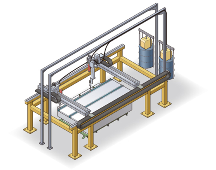 上位の加工情報を加工機に送ることで品質改善を実現【パネル組立ライン(接着材塗布機)】