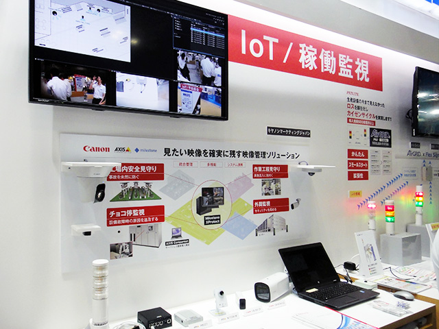 機械・装置の稼働状況をリアルタイムに遠隔監視できる様子を実演。