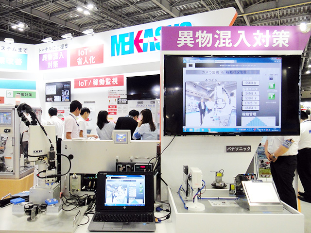カメラを使用した画像処理システムで異物を検出。混入を未然防止できる様子を実演。