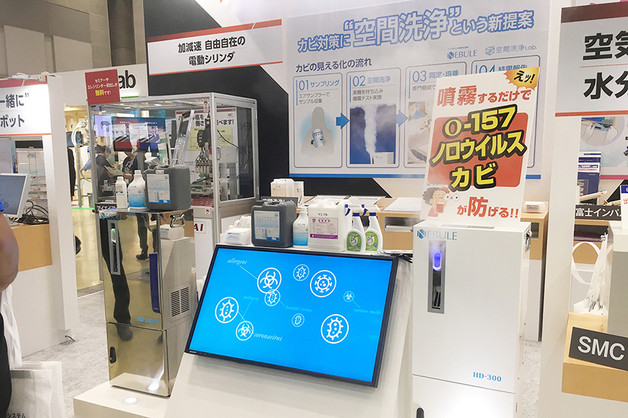 今回が初出展となる本展では、弊社子会社の空間洗浄Lab.社製のマイクロミスト噴霧型加湿機 NEBULE(ネブル)を中心に、医薬製造の研究・開発・品証部門に従事する方に向けた様々なソリューションを提案しました。 本展では、製品の紹介やソリューションのご提案するだけでなく、業界特有の非常に難解な課題や、お悩みごとを多数お伺いすることができ、当社にとって大きな収穫となりました。