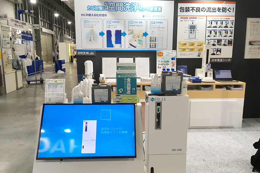 食品製造の品証担当者に向けて、カビ・ウイルス対策とHACCPへの対応に関する提案を行いました。 今年は亜塩素酸水とマイクロミスト噴霧型加湿機 NEBULE(子会社の空間洗浄Lab.製)の組み合わせデモにより、数多くのテーマをお聞きすることができました。 特に今年はHACCPが注目されており、これに関連するテーマも確認することができました。