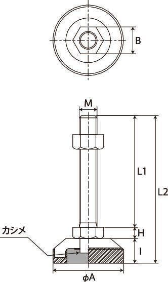 | M(並目) | L1 | L2 | H | I | A | B | ボルト・ナット | 受皿 | ラバー部分 | ||||||