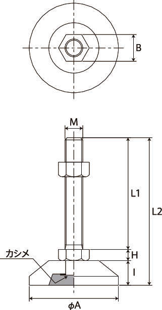 | M(並目) | L1 | L2 | H | I | A | B | ボルト・ナット | 受皿 | ||||||
