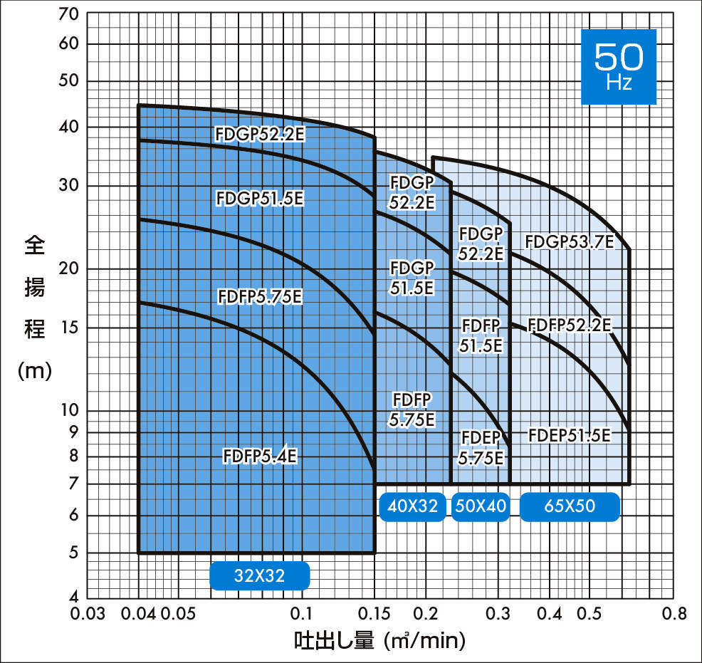 ・鋳鉄製ポンプ(FSD型)と取合い寸法が同一です。