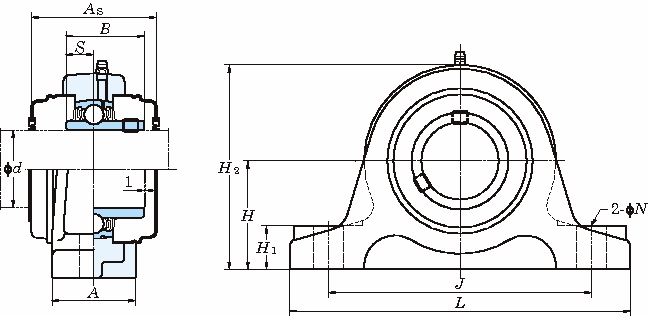 ・UC形軸受は給油機構を備え球状外径面の外輪と円筒穴の止めねじ付き広幅内輪を持つ、シールとスリンガが付くグリース密封形深溝玉軸受です。