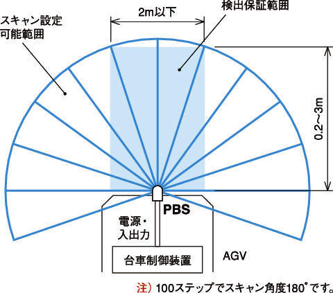 | 検出範囲 | 0.2~3×2m(原点はスキャン中心位置)。但しスキャン角度180°以内 |