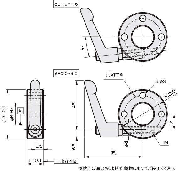 | クランプレバー材質(ネジ部) | SCK-CP3:黒染め(SUM22L) SCK-SP3:SUS303 |