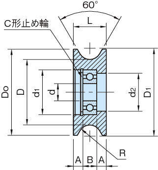 型式 材質 d Do D d1 d2 L R D1 A B ベアリング