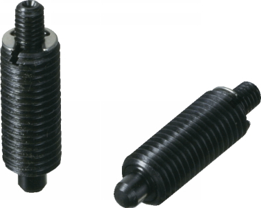 ・操作ネジ部を引くとノーズが引っ込み位置決め解除が簡単にでき、手を放すとノーズは内蔵スプリングによって元の状態に戻るハンド操作のスプリングプランジャーです。