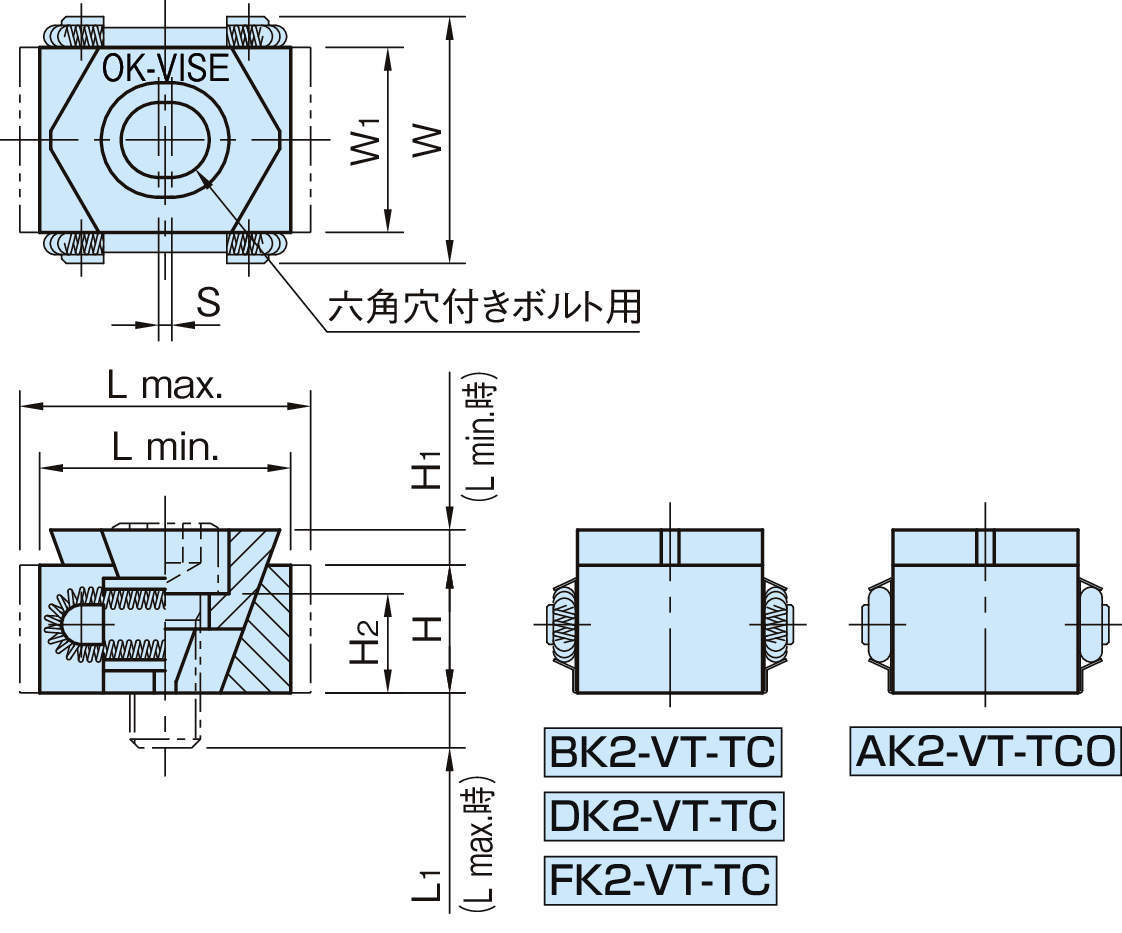 H1(mm) H2(mm) L1(mm) 適用ボルト クランプ力