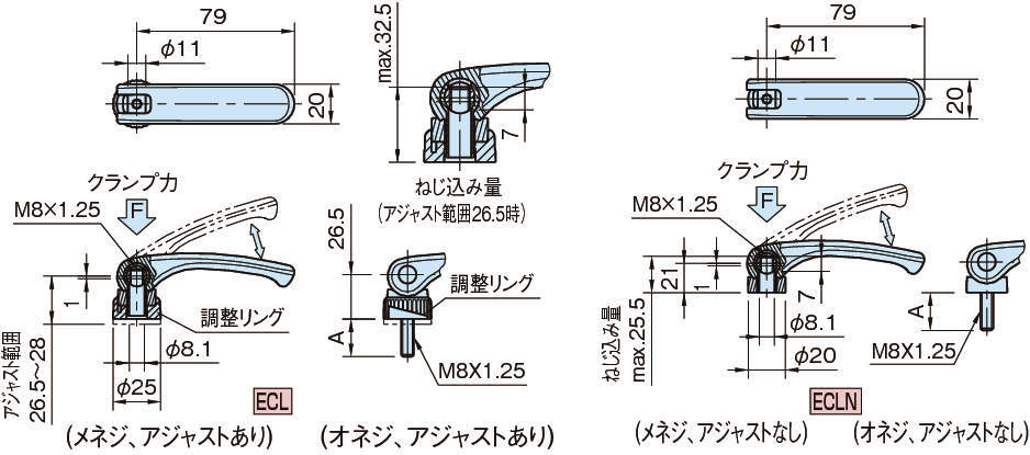 ECL08 メネジ スチール製 あり 1 26.5 28 79 20 25 M8×1.25 32.5 7 8.1 11 - 39