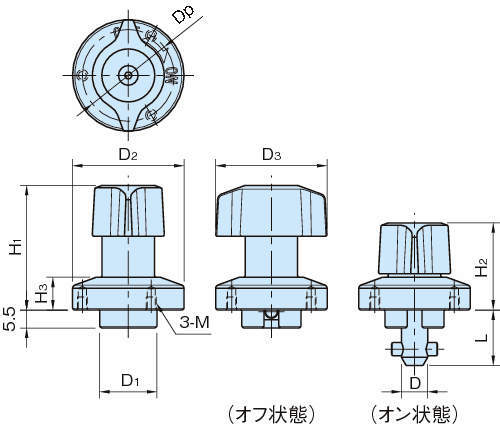 | ノブ | QCTHA:ポリアミド(ガラス繊維強化)、ブラック QCTHA-S、SUS:SCS13(SUS304相当) |