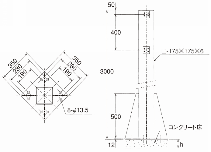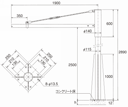 | NPK25 | ピラー形関節式ジブクレーン | 角パイプ | - | 250 | 2.0 | 2.8 | 280° | - | - | - |