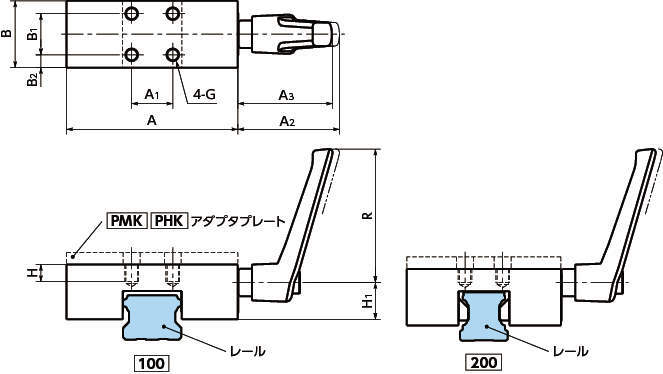 形状 | A | A1 | A2 | A3 | B | B1 | B2 | G | R | H | H1 |