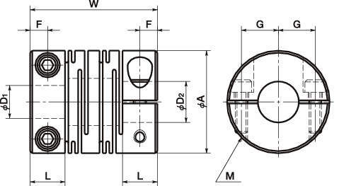 ・円筒材にスリットを入れた完全一体構造のオールステンレス製金属ばねカップリングです。