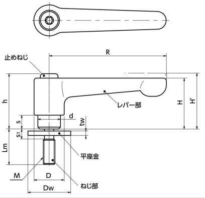平座金が組み込まれた、ねじ部がステンレス製のクランプレバーです。