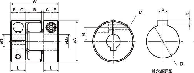 A L W B C F G M D1 D2 呼び 寸法 b t 呼び 寸法 b t