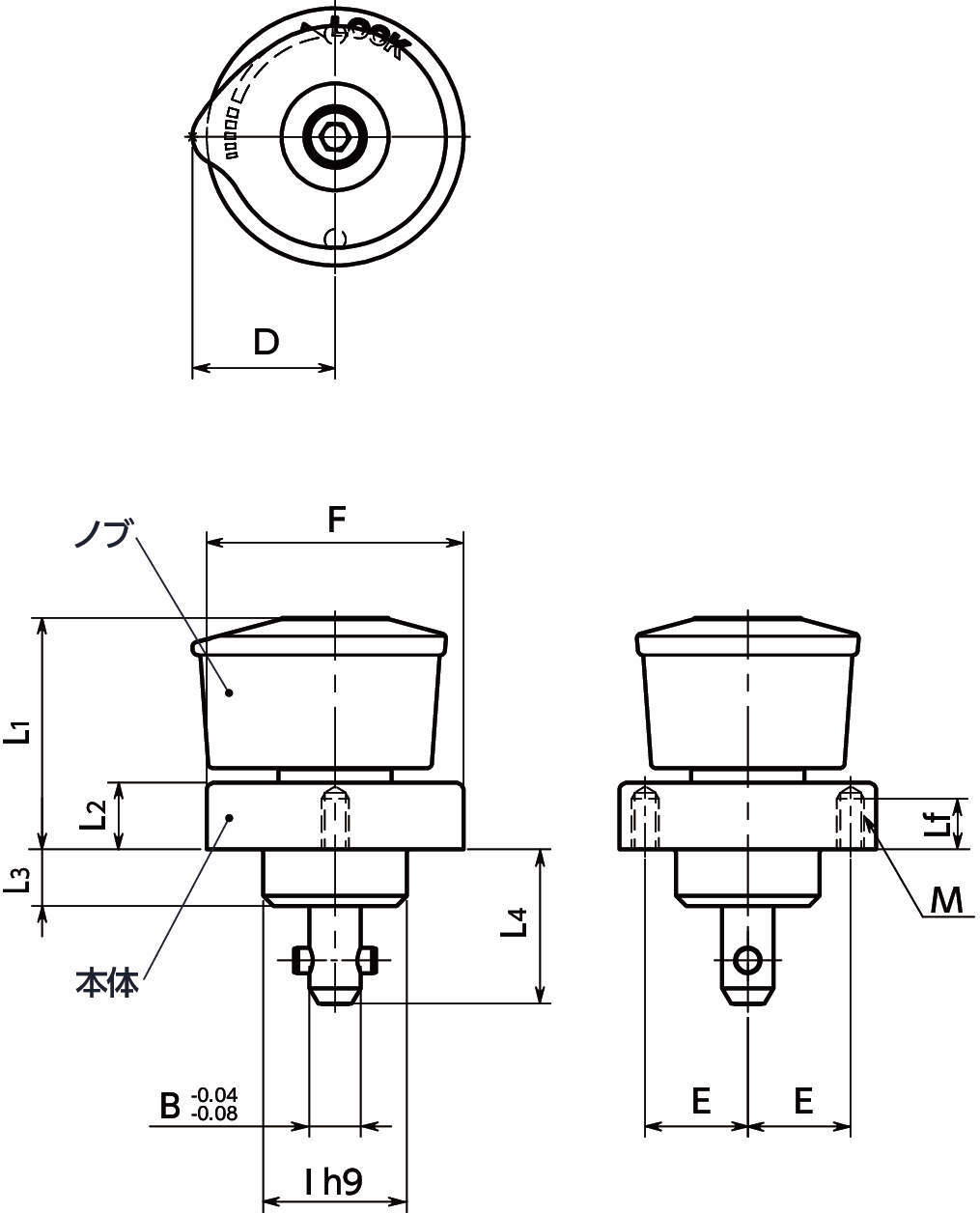 ・ノブは握りやすい丸みを帯びた逆テーパ形状、本体の刻印は耐蝕性を損なわないレーザ刻印です。