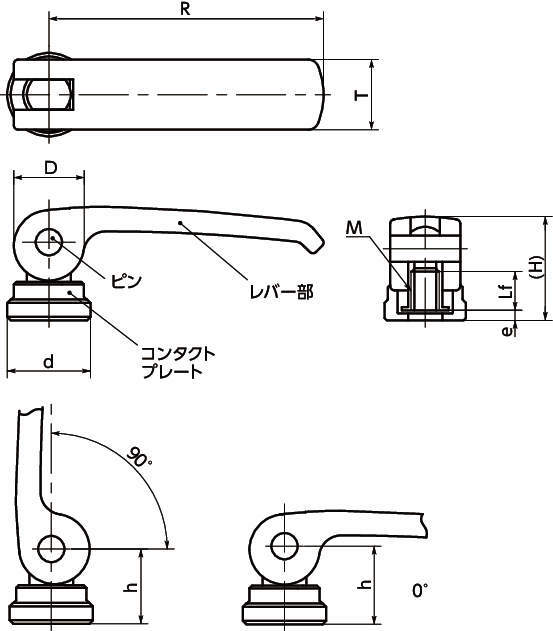 ・解放時の回転を制限したい場合は、カムレバー回り止めブラケット「LWRBS」(別売)をご使用ください。