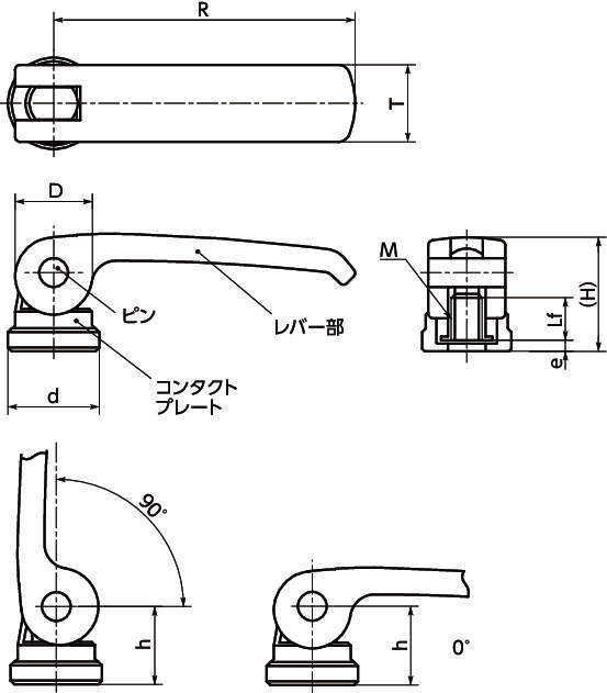 ・解放時の回転を制限したい場合は、カムレバー回り止めブラケット「LWRBS」(別売)をご使用ください。