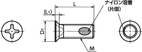・ねじ部に溶着したナイロンの摩擦によってねじの戻り回転を抑制します。