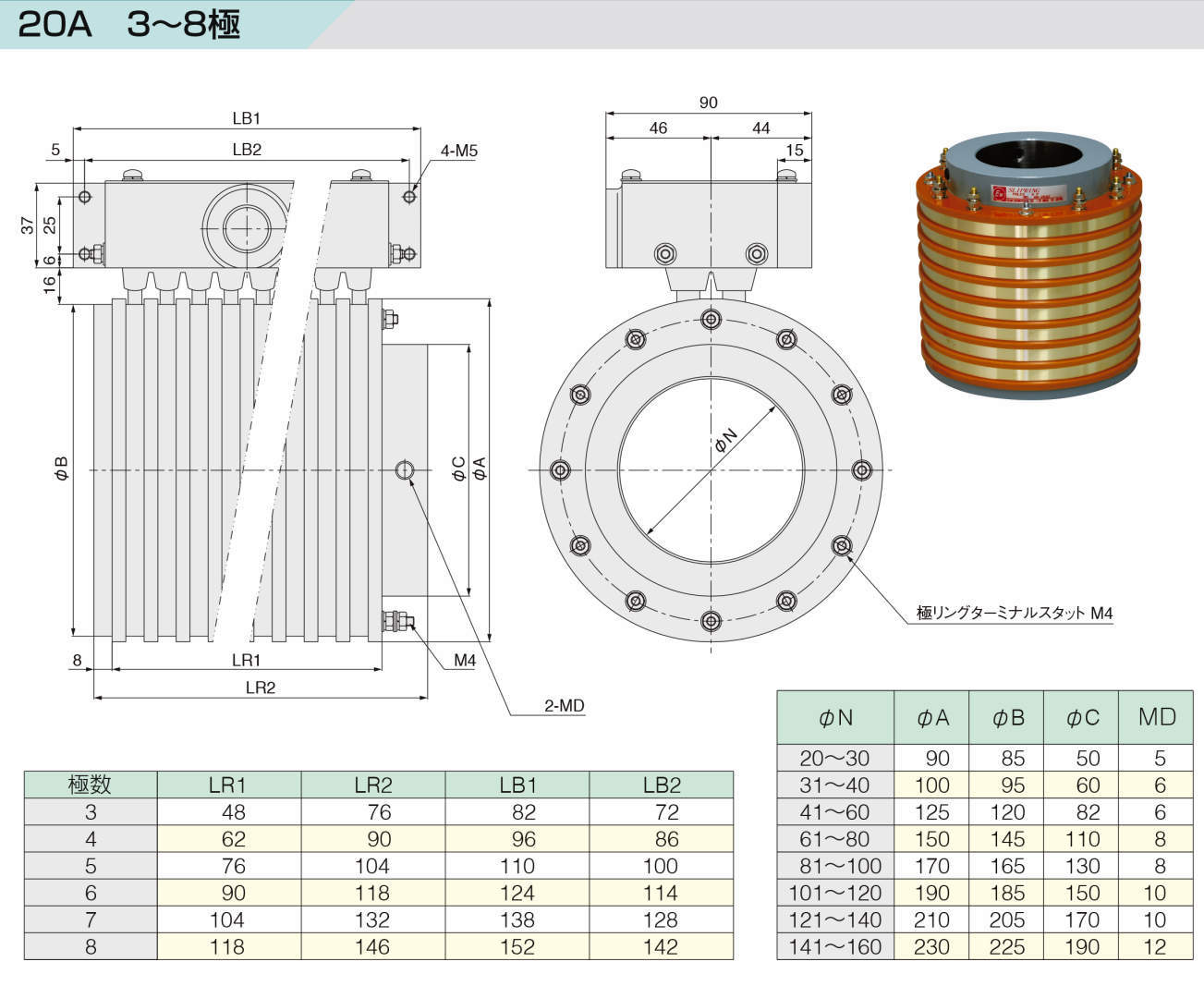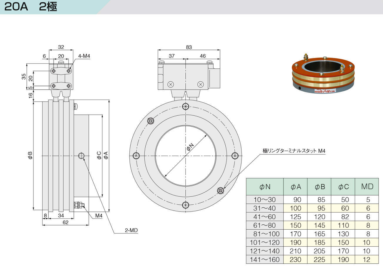 OSR020-034-160 20A 34極 φ160mm
