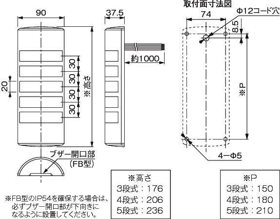 ・FB型はブザー開口部が下向きになるように設置してください