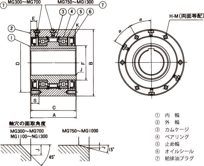 | MG1300 | 250 | 56×17.5 | 3.0 | 280 | 260 | 600 | 3.0 | 340 | 530 | 50 | 12-M30×3.5 | 130 | M12×1.75 | 176000 | 250 | - | 282000 | 407000 | 18.72 | 3.8 | 410 |