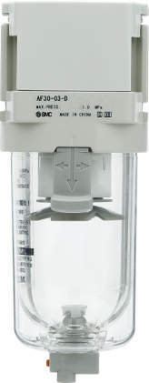 AF30-03D-2R-D AF30-D 30 空気 -5~60℃(凍結なきこと) 1.0MPa 1.5MPa 5μm ISO8573-1:2010[6:8:4] Rc3/8 25cm3 フロート式(ノーマルオープン) 0.1MPa - 金属ケース - ドレンコック 右→左 MPa・℃ -