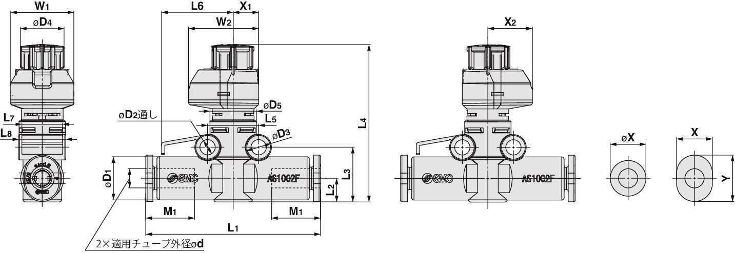 ・面当てストッパ(回転ストッパ)の採用により全閉 時(流量0)のハンドル 位置が常に一定。