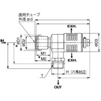 | タイプ | 外径 φd | シール方式 | ねじタイプ | 接続口径 T | IN→OUT | OUT→EXH | IN→OUT | OUT→EXH | Max. | Min. | Max. | Min. | Max. | Min. | |||||||||||||||||