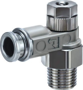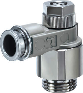 ワンタッチ管継手付スピードコントローラ(金属ボディ・マイナスドライバ調整用) エルボタイプ ASB-D