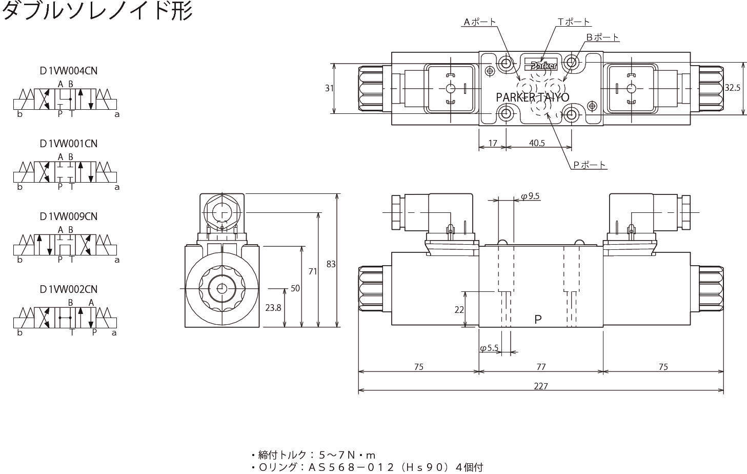 | D1VW001CNKJ | D1VW | 001C | 35 | 21 | 45~60 | 20~30 | DC12V±10% | ドイチェコネクタ(DCコイルのみ) | なし |