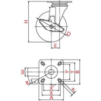 ・取付座がプレート状となっており、ねじやボルトで取付けるタイプのキャスター。