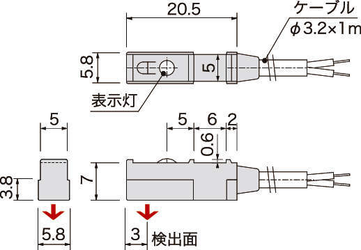 ・一般のセンサに比べ、高感度(検出距離大)、小形です。
