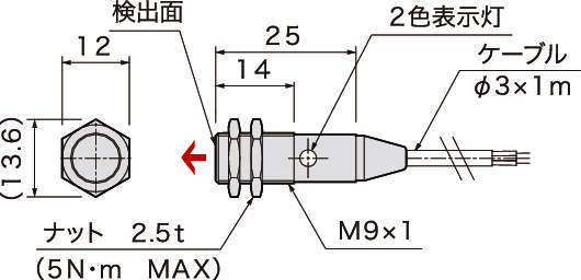 ・一般のセンサに比べ、高感度(検出距離大)、小形です。